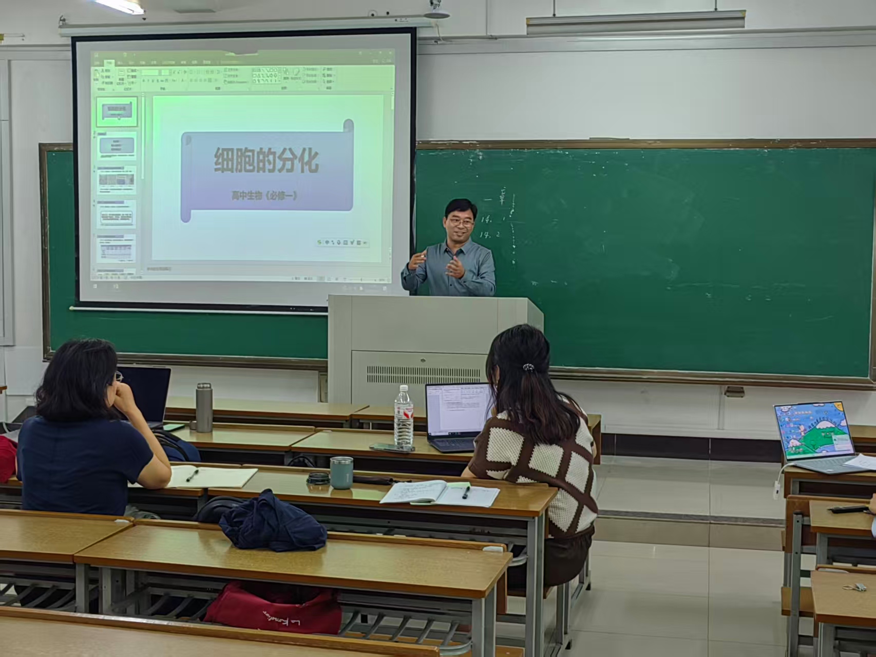 2025年10月15日下午2:00—6:00,我院举办生物科学专业师范生基本功大赛演训活动。此次活动邀请淮安市生物教研员倪晓青主任以及参加江苏省初中生物学青年教师基本功大赛的三位选手老师现场观摩并指导,生命科学学院张曈副院长、卜翠萍主任、周海英老师、孟凡龙老师以及薛松老师一同参加。2023级部分师范生代表也到场观摩。