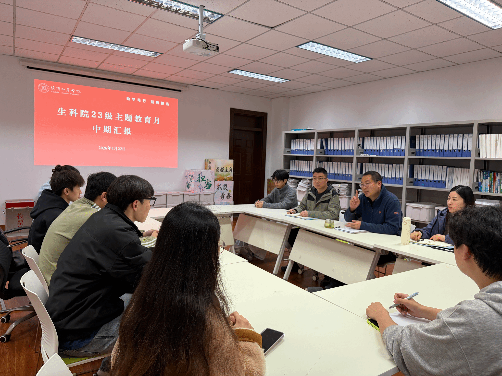 为进一步落实学校“勤学笃行 挺膺担当”主题教育月工作,4月22日,生科院在生科楼208开展23级各班级主题教育月汇报会,党委副书记鲍恩波、相关辅导员、23级各班汇报人参加会议。